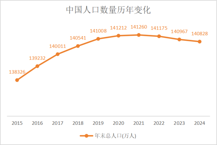 从宏观数据看,消费进入存量时代,面临人口总量缩减、老龄化持续加深、消费支撑力不足的困境。2024年全国人口比上年末减少139万人,16-59岁劳动年龄人口占比降至60.9%,60岁及以上老年人口占比超22.0%。
